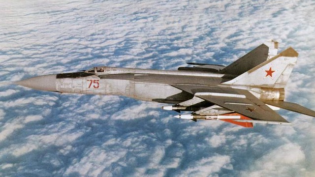 Ende der 1950er Jahre begann die ehemalige Sowjetunion mit der Entwicklung eines Höhenabfangjägers für lange Strecken, um dem amerikanischen Überschallbomber Valkyrie mit den nötigen Abwehrmassnahmen entgegentreten zu können. Nach der Einstellung des Valkyrie Projektes setzte man die Entwicklungsarbeiten fort, da Russland mit ihrem hoffnungsvollen Jagdflugzeug auf Rekordjagd gehen wollte. Neben eines ausserordentlich leistungsfähigen Höhenabfangjägers und Aufklärungsflugzeuges schuf das Konstruktionsbüro von Mikoyan ein Flugzeug, das mit seinen enorm kraftvollen Tumansky R-31 Triebwerken wie geschaffen war für das Erfliegen neuer Rekorde. Die Erschaffer der MiG-25, NATO Bezeichnung Foxbat, bauten ein Hochgeschwindigkeits- Jagdflugzeug der Superlative, der Prototyp Ye-155R hob am 6. März 1964 zu seinem Jungfernflug ab. Ab 1970 wurde die MiG-25 Foxbat den russischen Verbänden als Langstreckenabfangjäger und Aufklärer zugeführt. Ohne externe Waffen kam die blitzschnelle Foxbat auf Geschwindigkeiten von bis zu Mach 3,2 was in etwa 3200 km/h entspricht. Zwischen 1965 und 1975 stellte die Spezialversion E-266 18 Weltrekorde auf. Die MiG-25 war als reiner Abfangjäger für Fern-Einsätze entworfen worden, der in grosser Höhe und mit hoher Geschwindigkeit feindliche Bomberverbände abfangen und bekämpfen sollte. Das Flugzeug kann nur von langen, befestigten Pisten aus eingesetzt werden. Die starken Tumansky R-31 Triebwerke werden durch grosse Lufteinläufe mit der nötigen Luft versorgt. Diese Lufteinläufe mit zwei elektronisch gesteuerten beweglichen Rampen ermöglichen optimale Strömungsbedingungen in allen Höhen- und Geschwindigkeitsbereichen. Das Tragwerk ist am Rumpfoberteil angestrakt und weist vorne eine Pfeilung von 40 Grad auf, die Hinterkante hat eine negative V-Form von vier Grad. Die Eintrittskante des Flügels wurde aus Titan gefertigt, um den hohen Temperaturen standhalten zu können. Die Maschine hat ein für diese Zeit typisches Doppelseitenleitwerk und das Pendelhöhenleitwerk hat eine Pfeilung von 50 Grad. Der Rumpfvorderteil bietet Platz für ein grosses Radar mit hoher Leistung, das für diese Zeit als modern bezeichnet werden konnte. Mit einer Leistung von 600 Kilowatt konnten Ziele bis zu einer Reichweite von 120 Kilometern erfasst werden. Bekämpfen konnte die MiG-25 ihre Gegner auf Entfernungen von etwa 70 Kilometern mit halbaktiven Radar gelenkten Luft-Luft-Lenkwaffen. Selbsterklärend führte die MiG-25 auch eine wirksame Abwehrelektronik mit sich. Ende der 1970er Jahre wurden die MiG-25 Kampfflugzeuge mit modernerer, digitaler Elektronik ausgerüstet, die viele technologische Unzulänglichkeiten früherer Versionen beheben konnten. Die Aufklärervariante MiG-25R unterschieden sich vom Abfangjäger durch die konstant verlaufende Pfeilung an der Flügelvorderkante und einer etwas kleineren Spannweite. Im Rumpfbug ist ein JayBird Radar und dahinter sind fünf Kameras installiert. Vor den Kameras im unteren Teil des Rumpfes sind zudem je ein kleiner Bodenbild- und Dopplerradar untergebracht. Über die genauen Produktionszahlen liegen unterschiedliche und nur unvollständige Zahlen vor, produziert wurde die MiG-25 bis 1984. Danach verliessen nur noch verbesserte MiG-31 die Produktionshallen. Dieser schnellste je gebaute Abfangjäger wurde nicht nur in der ehemaligen Sowjetunion betrieben, sonder auch in Algerien, Indien, Irak, Libyen und Syrien.