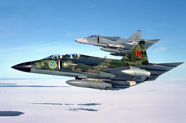 Als Ersatz für die erfolgreiche Draken stellte sich die schwedische Luftwaffe einen fortschrittlichen Mehrzweckjäger vor, der sich an den amerikanischen Konstruktionen F 105 Thunderchief und F 106 Delta Dart orientierte. Schwedens Luftwaffe stellte in den 1960er Jahren für ihr zukünftiges Kampfflugzeug einen höchst anspruchsvollen Anforderungskatalog auf. So musste der neue Kampfjet Angriffs- und Aufklärungsaufgaben im Tiefflug mit einer Geschwindigkeit von Mach 1 ausführen können. In grossen Höhen musste die neue Maschine den Leistungen des Vorgängers Saab Draken überlegen sein und eine Höchstgeschwindigkeit von Mach 2.0 erreichen. Die Luftwaffe forderte von dem zukünftigen Fighter eine hervorragende Steigleistung und hohe Beschleunigungswerte, damit kurze Reaktionszeiten garantiert werden konnten. Zusätzlich forderte die Luftwaffe Kurzstart- und Landefähigkeiten, um von kurzen Pisten und Strassen operieren zu können. Solche Spezifikationen stellten selbst für Grossmächte eine Herausforderung dar. Ohne grosse Zweifel und politisches Gerangel wurde in den 1960er Jahren der Projektstart beschlossen. Schweden nahm die beträchtlichen Entwicklungsrisiken auf sich und sprach sich für die Beschaffung von 550 Maschinen aus, diese Zahl musste inflationsbedingt auf 300 reduziert werden.