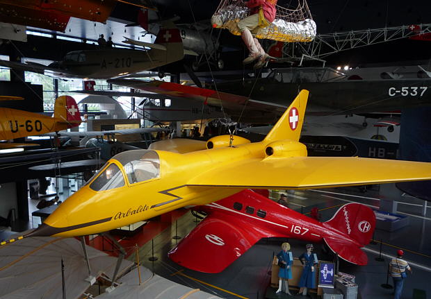 Die N-20 Aiguillon widerspiegelt den Einstieg der Schweizer Luftfahrt ins Jetzeitalter. In Deutschland und England erzielten die Konstrukteure bereits während dem Zweiten Weltkrieg grosse Fortschritte bei Flugzeugen mit Düsenantrieb. Deutschland hatte mit der Me 262 bereits 1944 einen einsatzfähigen Düsenjet, der gut 150 km/h schneller war als die Konkurrenten mit Kolbenmotoren. Erst nach dem Krieg gelang der Schritt vom Kolbenmotor ins Jetzeitalter. Mit dem N-20 Aiguillon baute das Eidgenössische Flugzeugwerke Emmen EFW ein Düsenflugzeug der Meisterklasse, leider musste das Projekt wegen mangelnder Unterstützung anfangs der 1950er Jahre eingestellt werden. Bei dem Ausstellungsflugzeug handelt es sich um den zweiten flugfähigen Prototypen, die Arbalète war für Erprobungszwecke im Massstab 2:3 gebaut worden und hob am 16. November 1951 zum Jungfernflug ab.